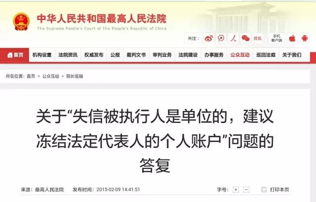 公司为失信被执行人,三种情况可冻结法定代表人账户 关于“失信被执行人是单位的,建议冻结法定代表人的个人账户”问题的答复 最高人民法院于2010年发布了...